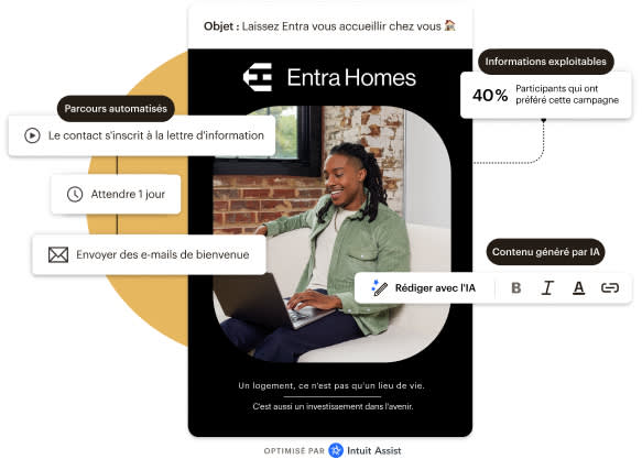 Tirez parti de la puissance de l'IA pour accueillir de nouveaux contacts, récupérer des paniers abandonnés et reconquérir les clients perdus grâce à des automatisations et à des e-mails complets.