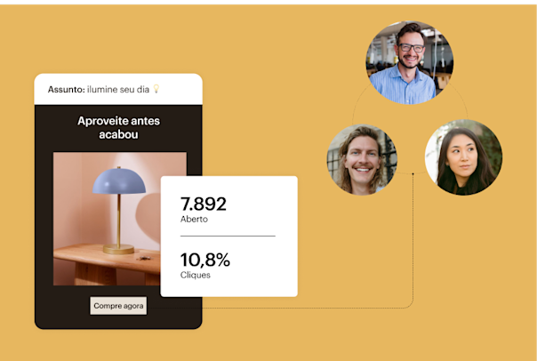 - ROI 30 vezes maior : com base em toda a receita de comércio eletrônico atribuível às campanhas do Mailchimp de usuários de planos pagos, de agosto de 2024 a agosto de 2025.Para calcular o ROI é preciso ter uma loja de e-commerce vinculada a uma conta do Mailchimp.Os resultados variam.