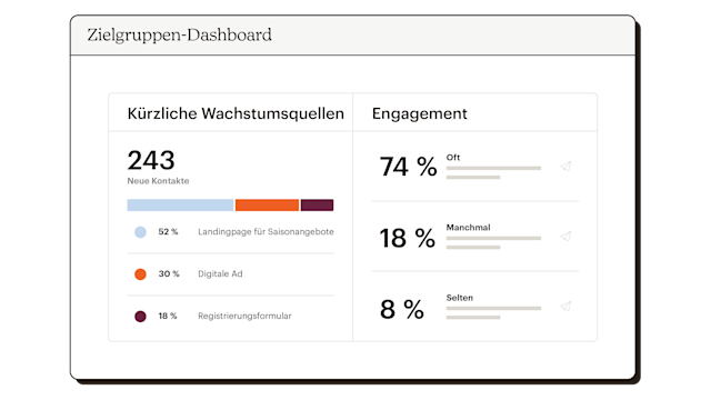 Unser Zielgruppen-Dashboard bietet Ihnen die Tools, die Sie benötigen, um Kontaktdaten zu verstehen und darauf zu reagieren – alles an einem Ort.