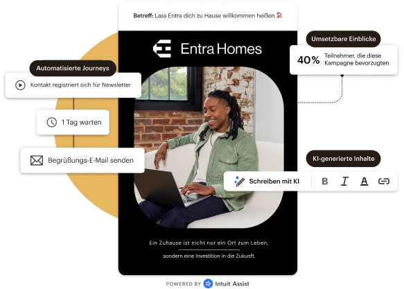 - Nutze die Leistungsfähigkeit von Intuit Assist, um zielgerichtete Inhalte zu erstellen, die bei deiner Zielgruppe ankommen.
