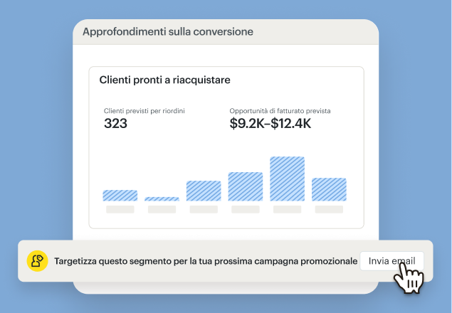 Pensa all'AI come a uno strumento che gestisce le attività ripetitive e fa emergere dati approfonditi che potrebbero sfuggirti. Usala per analizzare i dati dei clienti e identificare i pattern relativi a chi sta acquistando, quando queste persone interagiscono e quali contenuti funzionano meglio.